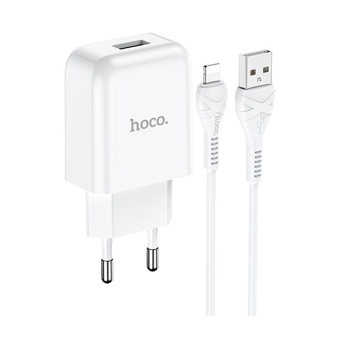 Cestovní nabíječ HOCO N2 Vigour 1x USB A (2A) + kabel USB A na Lightning, barva bílá
