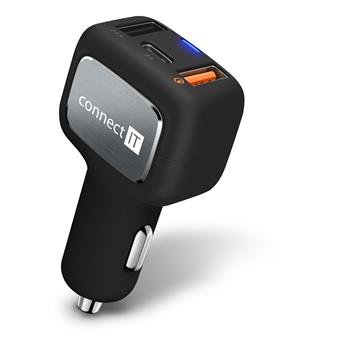 CONNECT IT InCarz QUICK CHARGE 3.0 nabíječka do auta, 2x USB, 1x USB-C, QC 3.0, černá