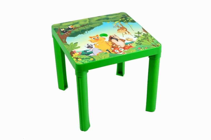 dětský plastový stolek s dětským motivem je lehký a současně stabilní je vhodný do domácnosti nebo na zahradu stolek je vybavený otvorem na deštník rozměry 46 x 46 x 39 cm barva zelená EAN 5995875609791 číst celé