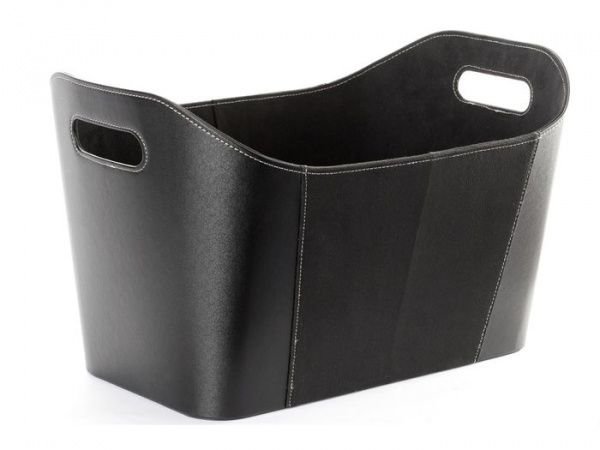 Velký koš na dřevo imitace kůže 35 x 40 x 55 cm - černý
