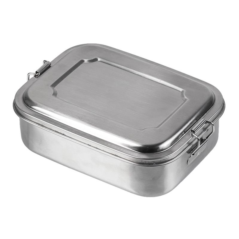 Nerezový jídelní box uzavíratelný pomocí dvou svorek. Box lze mýt v myčce. číst celé