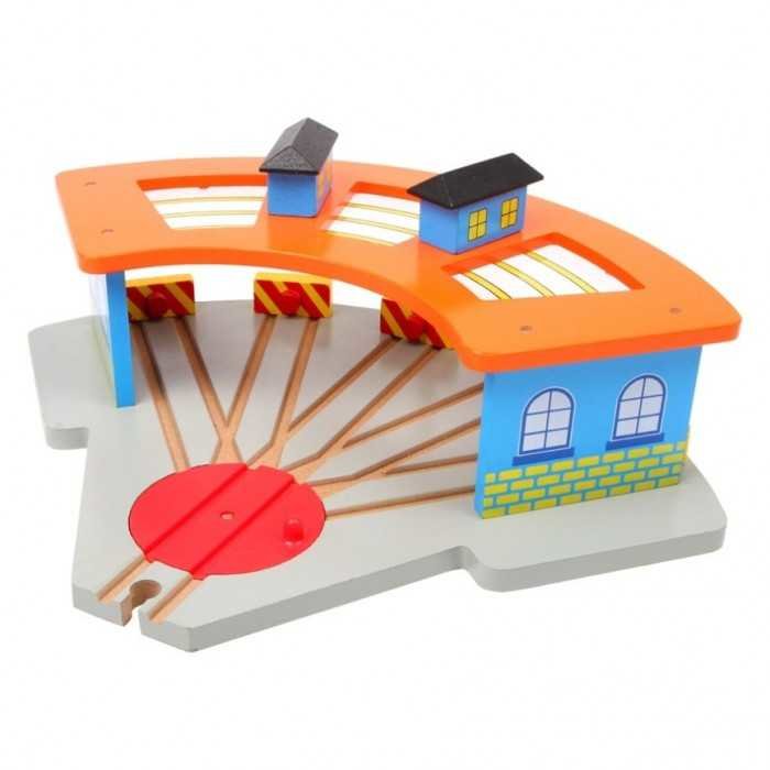 V této pestře malované garáži-depu z pevné překližky je parkovací místo pro 5 vlaků.Otočná křižovatka pro nasměrování jednotlivých vláčku na připojení koleje. Skvělý doplněk k Vaší vláčkodráze.Německá firma Legler zaměřená na výrobu kvalitních dřevěných hraček od roku 1996. Všechny dřevěné hračky...