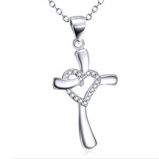 AL1009 Stříbrný řetízek s přívěškem křížek se srdíčkem - náboženské