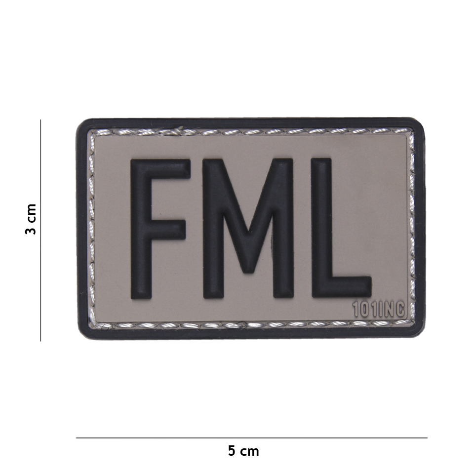 Gumová nášivka 101 Inc nápis FML - šedá