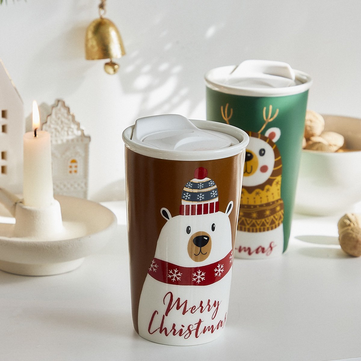 Vánoční hrnek | TEDINO | hnědý vysoký s víčkem | 0,5 l | 873121 Homla