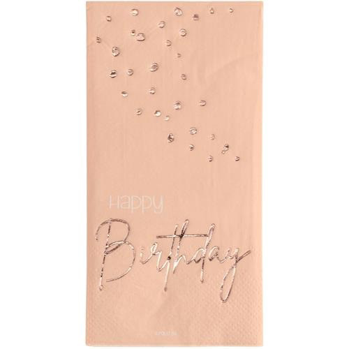 Papírové ubrousky v motivu Elegant Lush Blush s nápisem Happy Birthday.Vhodné do kombinace s dalšími produkty této kolekce. Rozměr: 33 x 33 cm. Balení: 10 ks. číst celé