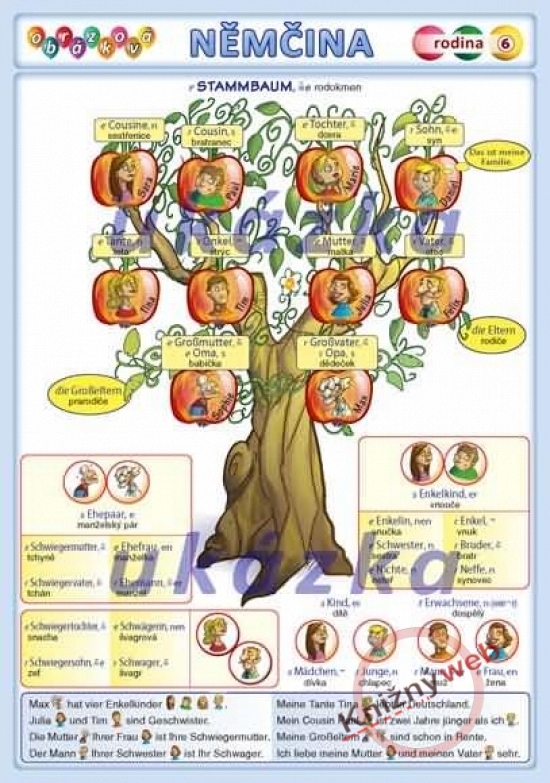 Obrázková nemčina 6 - rodina je unikátní ilustrovaný slovník, který vám pomůže rychle zvládnout slovní zásobu týkající se rodiny a jejích členů. Díky názorným ilustracím si nová slovíčka snadno zapamatujete a navíc si osvojíte i správnou výslovnost.