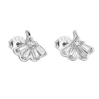 EG2635 Stříbrné náušnice lístečky se zirkony - listy