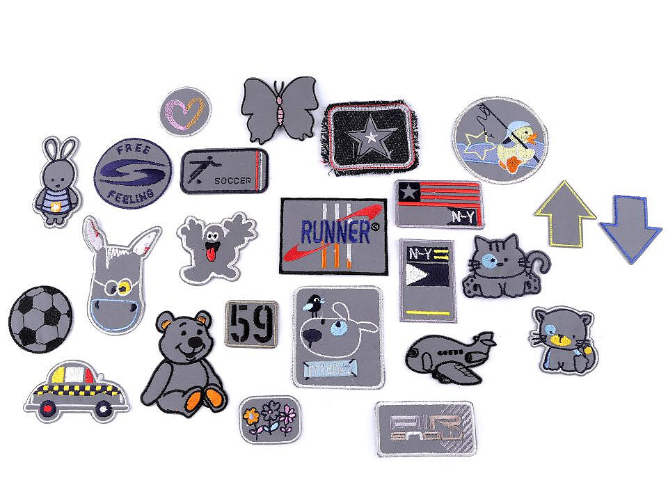 Balení obsahuje 10 kusů nažehlovaček různých velikostí a dezénů, díky čemuž si snadno vyberete tu správnou pro jakékoli místo na vašem oděvu. Největší nažehlovačka má rozměry 70 x 60 mm a ta nejmenší 30 x 25 mm. Reflexní materiál navíc zvyšuje vaši viditelnost a bezpečnost v šeru nebo za tmy.