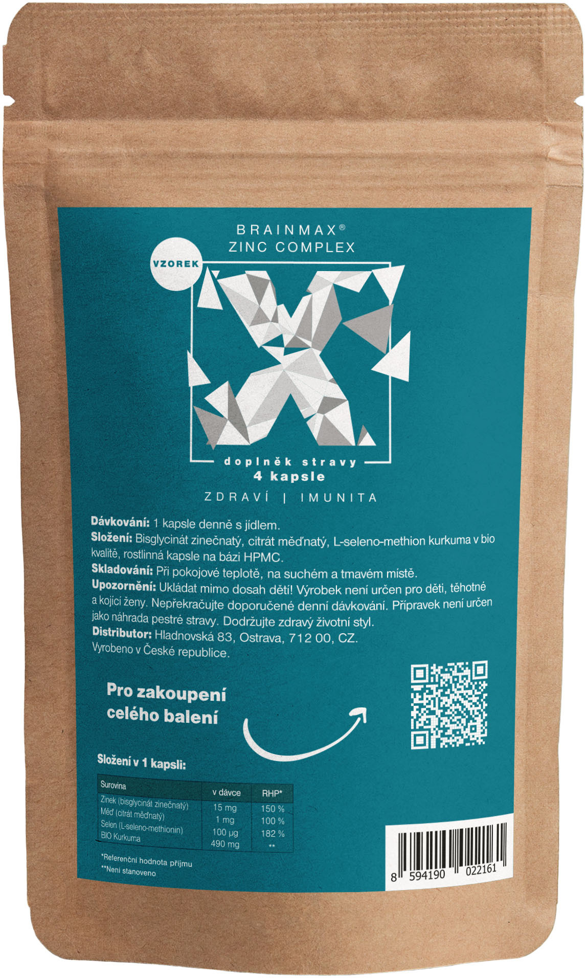 BrainMax Zinc Complex, Zinek + Selen + Měď + Bio Kurkuma, vzorek 4 kapsle