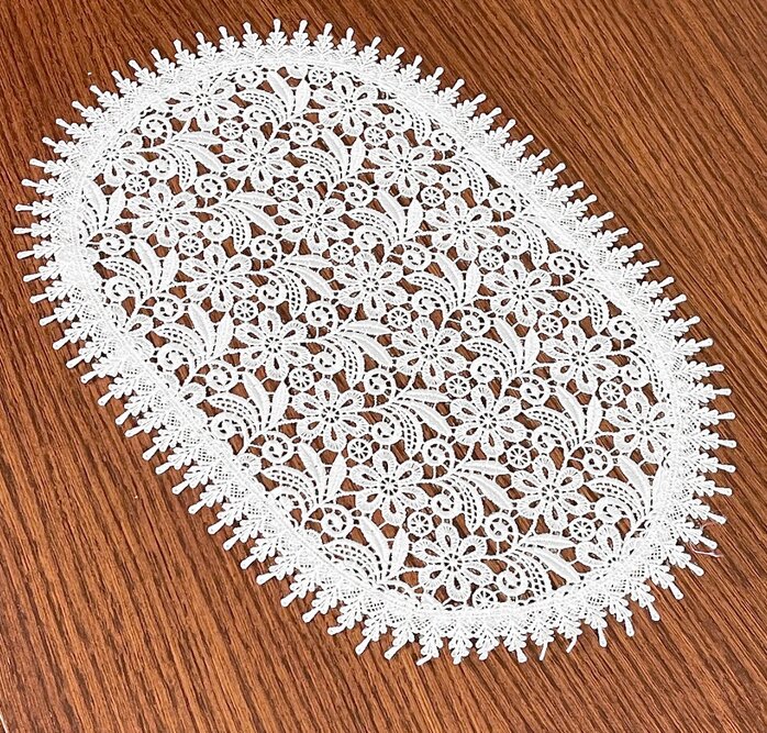 Kvalitní krajkový ubrousek v moderním designu. Ubrousek je nabízen v oválném provedení. Ubrousek je odolný vůči nečistotám, neabsorbuje vodu. Ubrousek je všestranným a stylovým doplňkem Vaší jídelny. číst celé