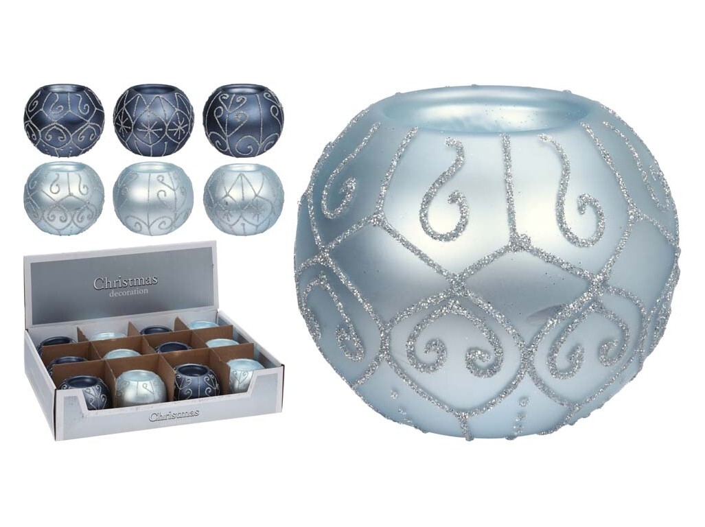 Svícen sklo 70mm koule na čajovou svíčku mix, modrá