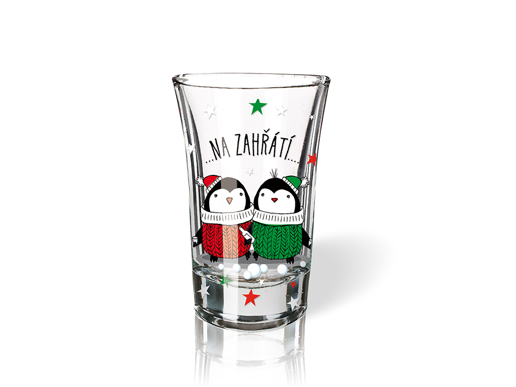 Tento vtipný panák Na zahřátí s motivem roztomilých tučňáků přináší příjemnou vánoční atmosféru. Vyroben je ze skla, takže jeho design je elegantní a zároveň odolný. Díky objemu 40 ml je ideální pro tradiční panáky, které zahřejí i potěší.