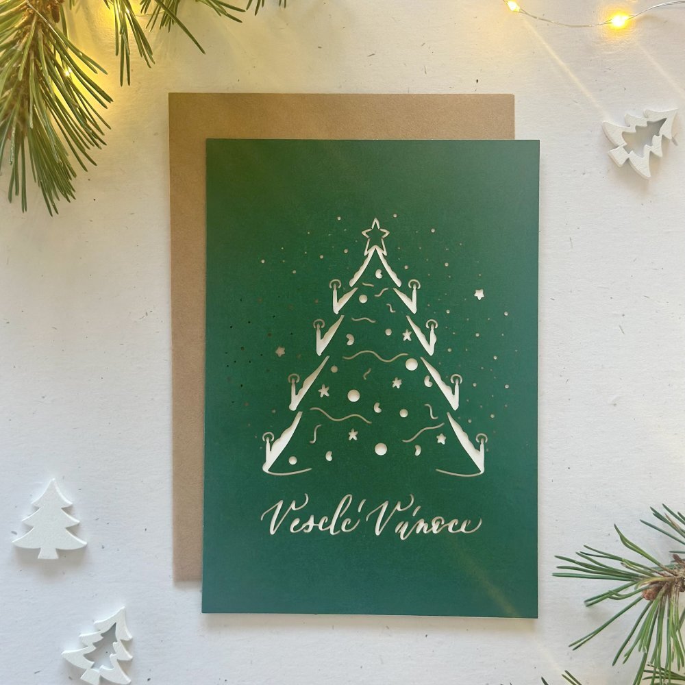 Be Nice EKO vánoční přání se stromečkem - zelené