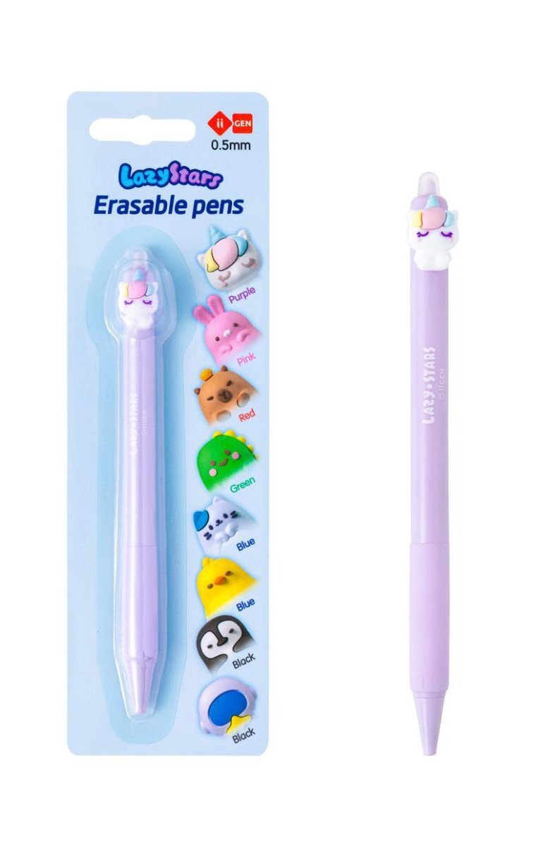 Klikací gumovací gelové pero s motivem Jednorožce. Tloušťka hrotu 0,5 mm, inkoust fialový, na blistr kartě. číst celé