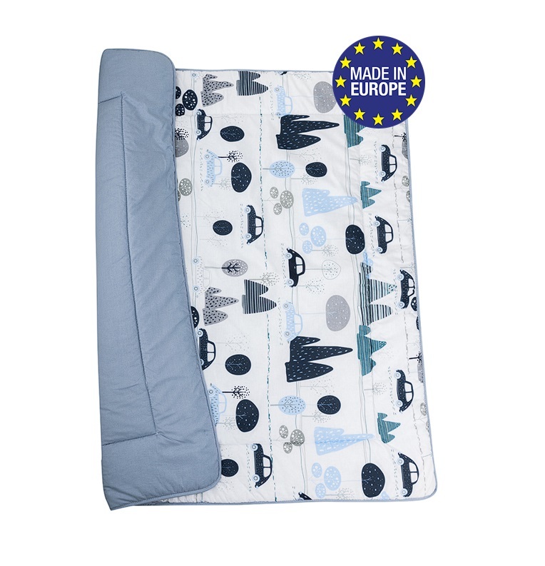 Bomimi HRACÍ deka 120x120, bavlna, oboustranná autíčka, modrá