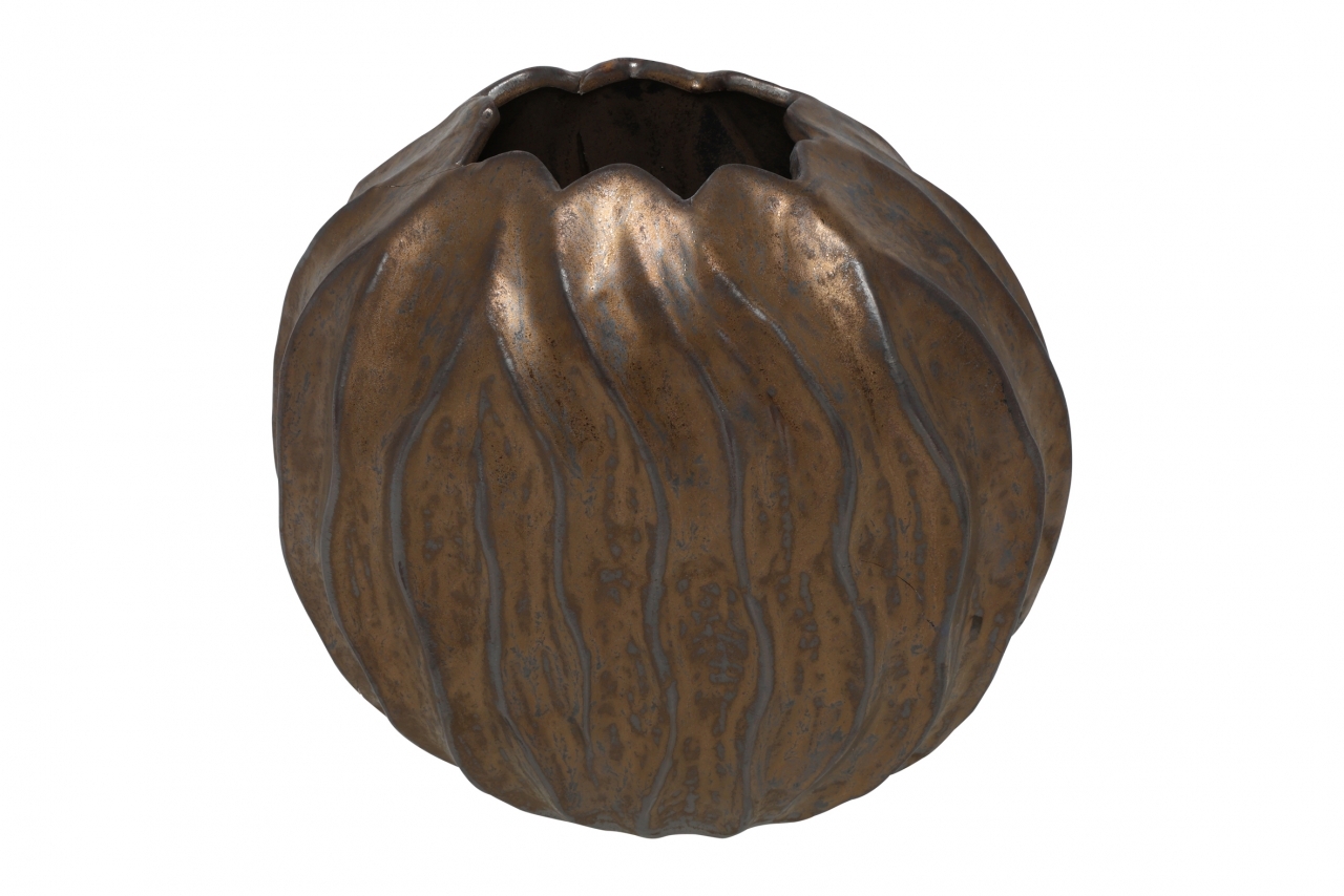 Kovová kulatá, hnědá váza Baron S, 27 cmmateriál: niklbarva: hnědározměry: 27 x 25 x 14 cm Umístěte vázu na strategické místo ve vašem domově, aby přitáhla pozornost a dodala prostoru originální atmosféru. Použijte vázu jako centrální body v místnosti, kolem kterých můžete aranžovat další...