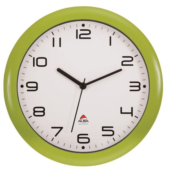 klasické nástěnné hodiny na baterii AA ;výrazný a dobře viditelný ciferník ;kvalitní Quartz mechanismus ;světle zelený plastový rám ;skleněný kryt hodin ;průměr: 30 cm ;šíře: 5,5 cm ;baterie není součástí balení ;materiál: plast, sklo; ZÁRUKA: 36 měsíců číst celé