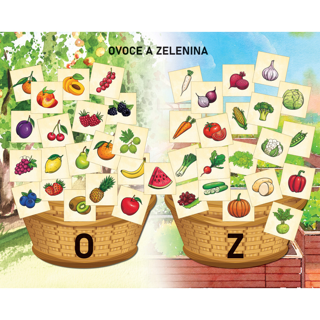 Ovoce a zelenina, závěsný naučný magnetický obraz a 40 karet