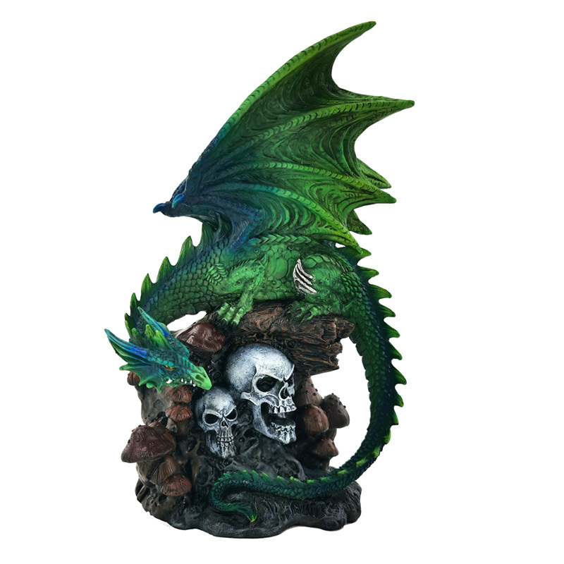 Soška - Magický sen- Duch lesa -smerald-Drak a lebka