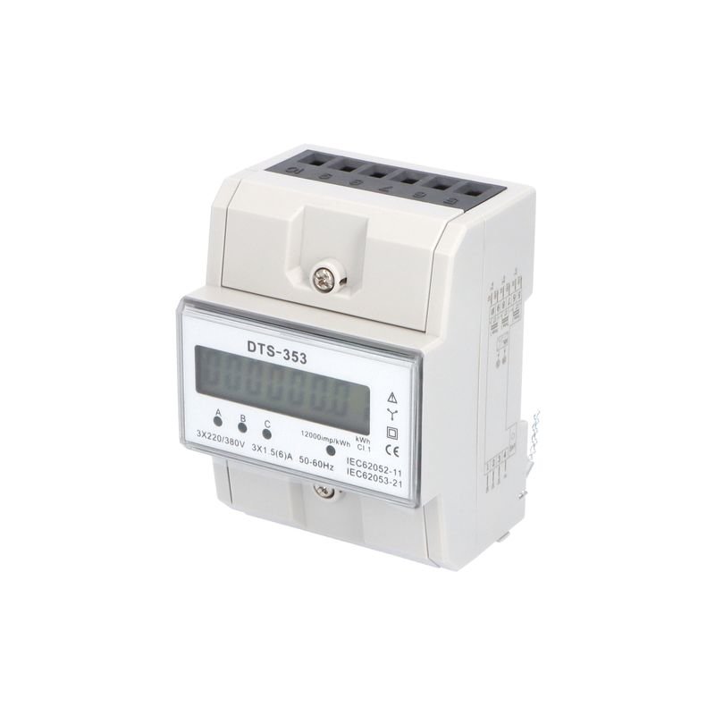 Elektroměr DTS 353-L X/5A, 4,5mod., LCD, 3-fáz., 1-tar., podružný, nepřímé měř.