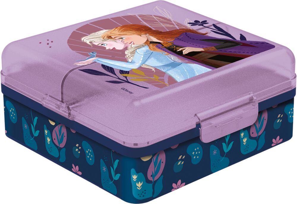 Plastový svačinový box s motivem Frozen, má jednu velikou přihrádku ve spodní části a ve víčku jsou dvě menší přihradky rozdělené vnitřní prepážkou. Jednoduchý a bezpečný uzávěr. číst celé