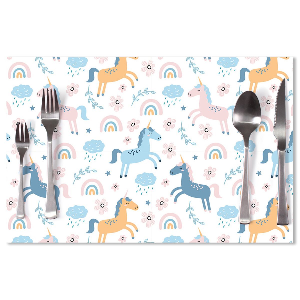 Stylový motiv duhových jednorožců zútulní každý prostor a skvěle se kombinuje s dalšími dekoracemi. Pokud máte rádi jedinečný design a chcete mít domov sladěný do detailu, je toto prostírání ideální volbou právě pro vás!