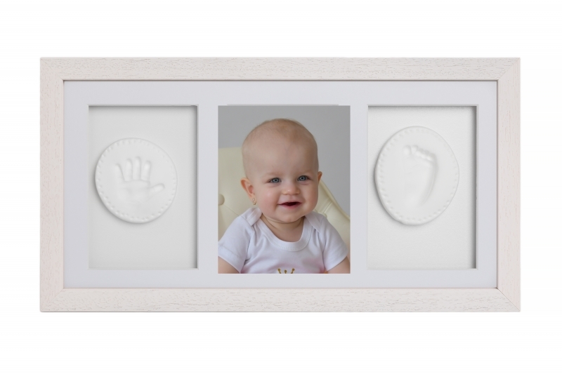 Sada na otisky nožiček či ručiček, trojrámek - dárková sada pro miminko - bílá