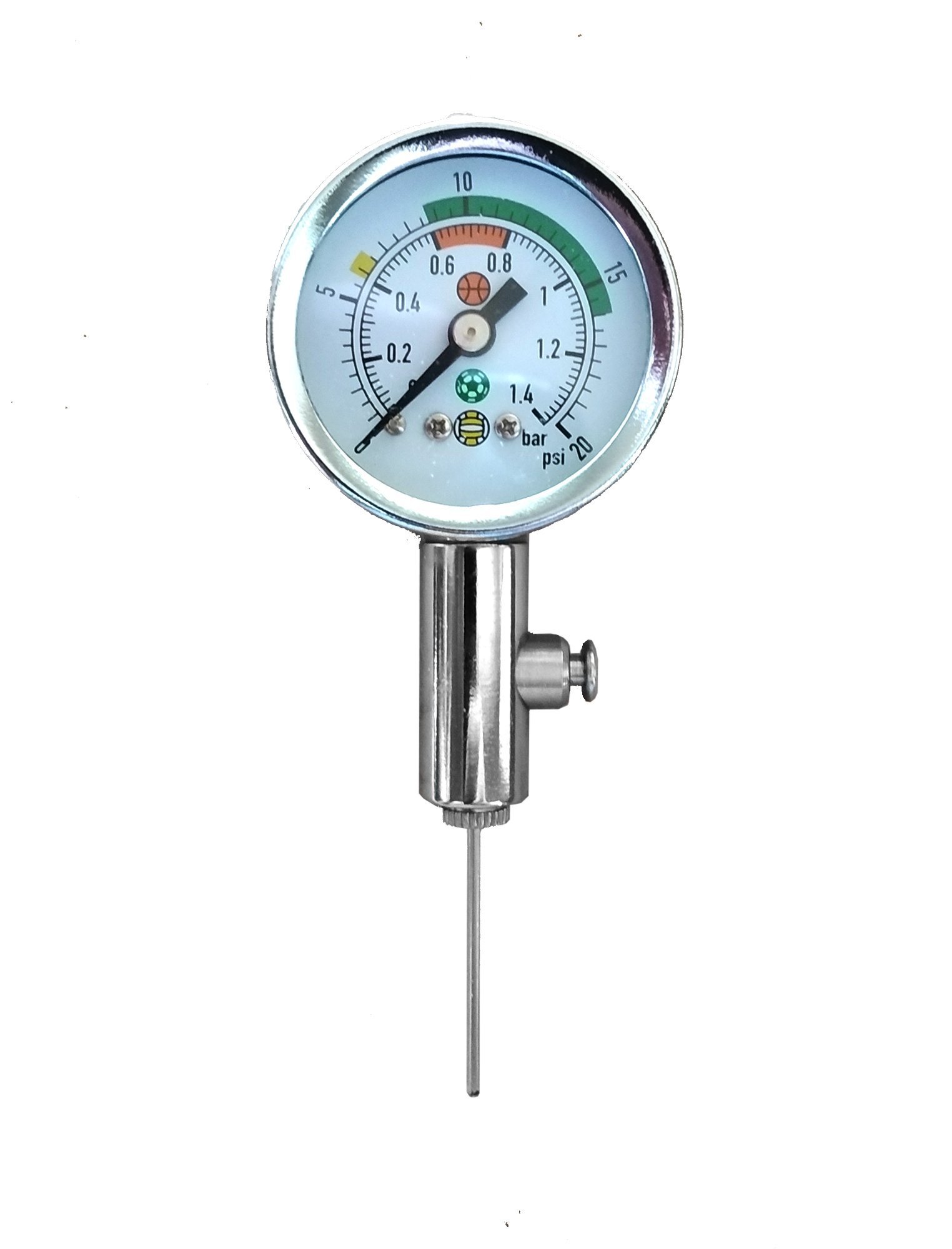 Měřič tlaku míčů SedcoKovový měřič tlaku míčů s vypouštěcím ventilem Sedco je kvalitní a přesný měřič tlaku míčů. Pod budíkem je tlačítko pro vypouštění přehuštěných míčů.Technický popis:- Výrobce: Sedco- Vypouštěcí tlačítko- Součástí balení: ventil číst celé