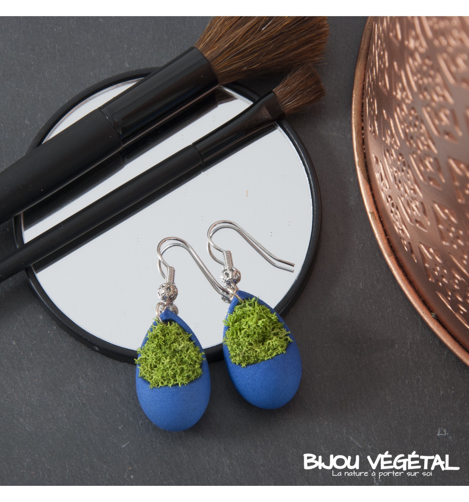 Živé šperky - Náušnice Slza modré s lišejníkem