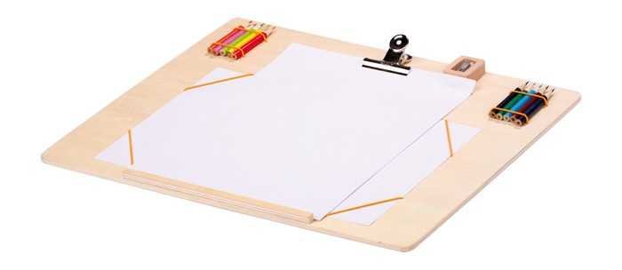 Deska ze stabilního vrstveného dřeva s připevněným ořezávátkem a 10 pastelkami. Papír na kreslení je možné upevnit prostřednictvím klipu nebo gumiček, což dává rukám volnost při tvoření uměleckých děl. tím je deska ideální na cesty vlakem či autem!Německá firma Legler zaměřená na výrobu...