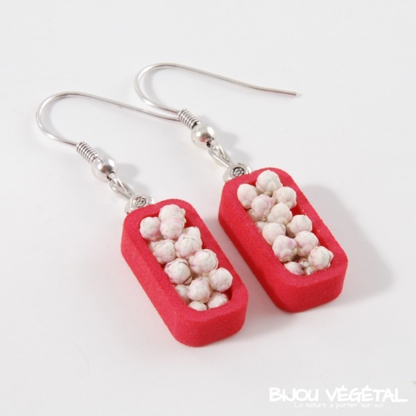 Živé šperky - Náušnice Vertigo růžové s trvalými bílými květy