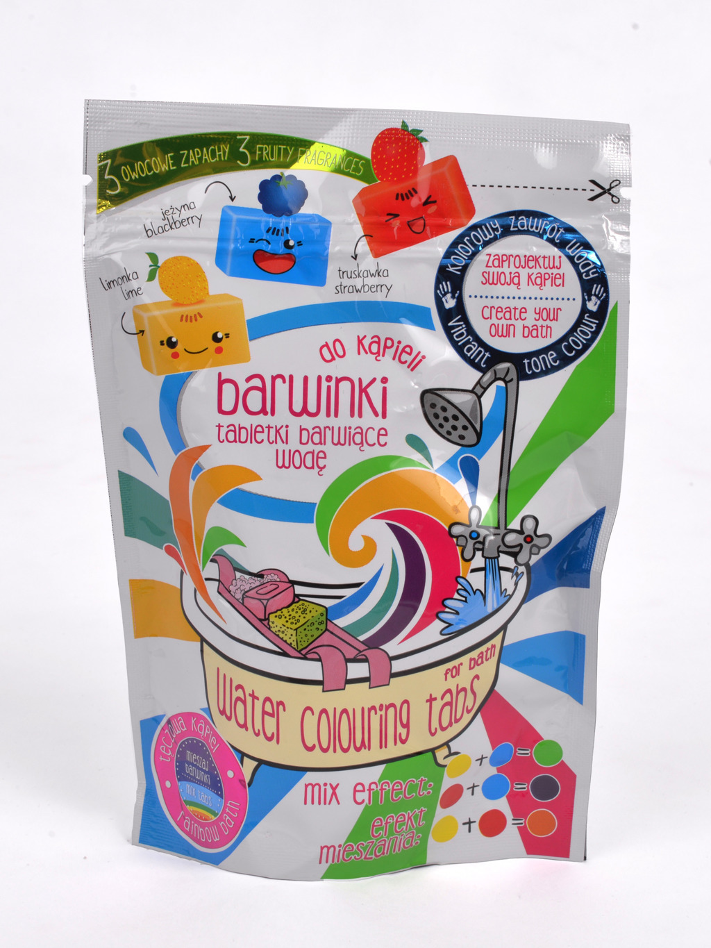 Barva do koupele – 3 různé vůně – limetka, borůvka a jahoda. Balení obsahuje 9 ks po 18g. Dermatologicky testováno. číst celé