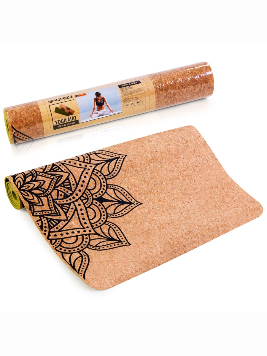 Spokey - SAVASANA jóga podložka na cvičení korková 4mm - zelená s mandalou