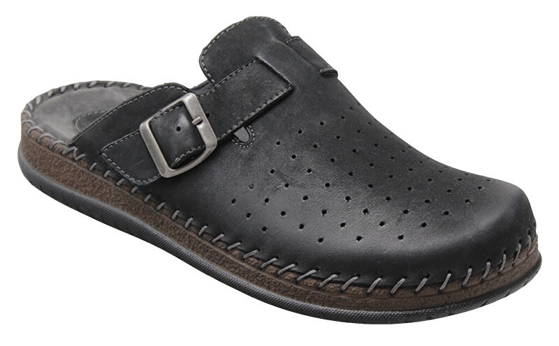 Pánský pohodlný pantofel s plnou špicí.Výrazně měkčená, pohodlná stélka.Svrchní materiál - perforovaná useň.Regulace šíře - přezka.Barva - černá. číst celé