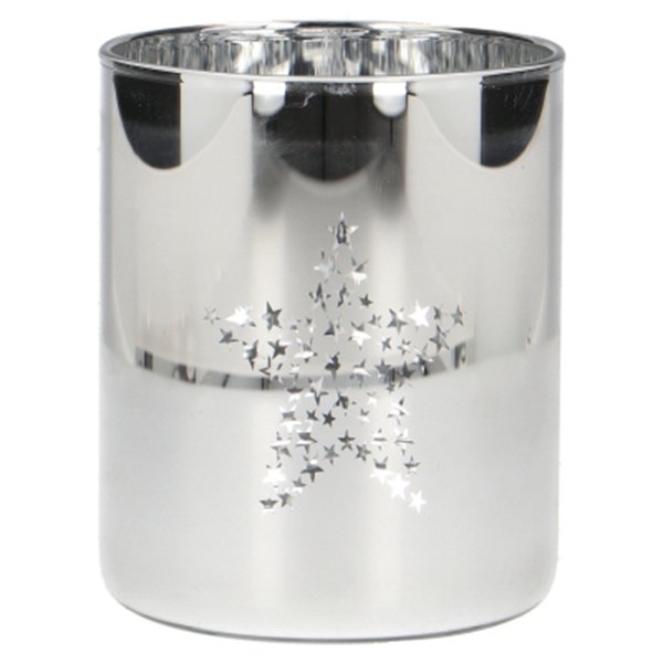 Velký dekorativní svícen s vánočním motivem hvězdy - 10x12cm krásný skleněný dekorativní svícen s motivem stříbrné hvězdy, který po zapálení svíčky dělá příjemnou vánoční atmosféru a obrazy hvězd po místnosti. Svícen je vyroben z dvojitého skla. číst celé