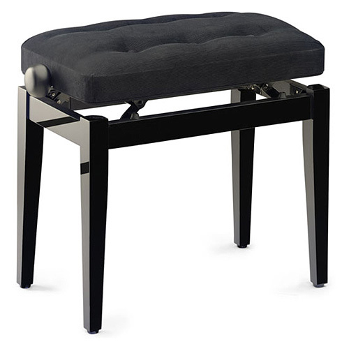 Dokonale zpracovaná stolička ke klavíru typu "Chesterfield", kterou lze výškově nastavit (od 47 cm - do 55 cm). Sedák vyroben z kvalitního černého sametu. Hmotnost 7,6 kg. číst celé
