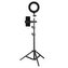 smartphony o šířce 58 až 88 mm a hmotnosti do 300 g. Stativ lze vysunout až do výšky 120 cm aunese jak prstencové světlo, tak