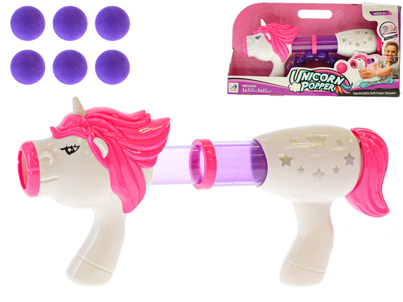 Pistole jednorožec 44cm na natažení s pěnovými náboji 6ks v krabičce