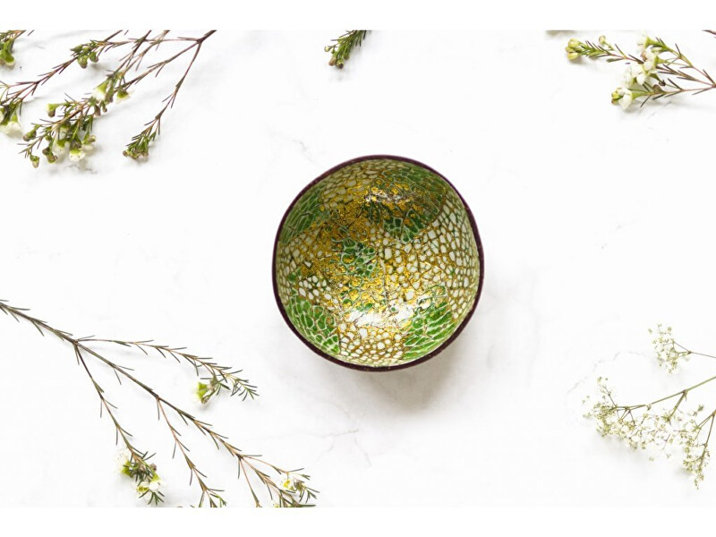 Tahle unikátní miska vznikla z obyčejné kokosové skořápky. Farmáři ve Vietnamu ji s láskou obrousili, vyleštili a opatřili lakovaným mozaikovým vzorem, který ji vtiskl punc exotiky. Miska je zdravotně nezávadná a určená pro přímý styk s potravinami. Má ráda pokojovou teplotu, nepatří do...