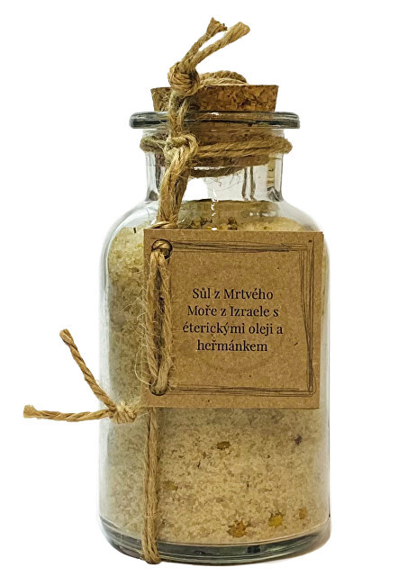 Sůl z Mrtvého moře z Izraele s heřmánkem 300 g je přírodní sůl z Mrtvého moře do koupele s příměsí heřmánku a éterickým olejem z mandarinky. Kombinace heřmánku a mandarinky má za následek, že heřmánek navodí atmosféru, kde se krásně uvolníte a můžete relaxovat a mandarinka vám dodá chybějící... číst celé