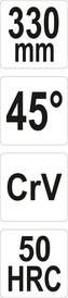 Tento nástroj je vyroben z odolné CrV oceli, která zaručuje dlouhou životnost a výbornou pevnost. Díky délce 330 mm a speciálně zahnuté čelisti pod úhlem 45° jsou kleště přizpůsobeny pro komfortní práci při složitých úkonech. Zoubkované čelisti s tvrdostí 50 HRC vám poskytnou pevný a jistý úchop, což oceníte při přesných opravách nebo montážích.