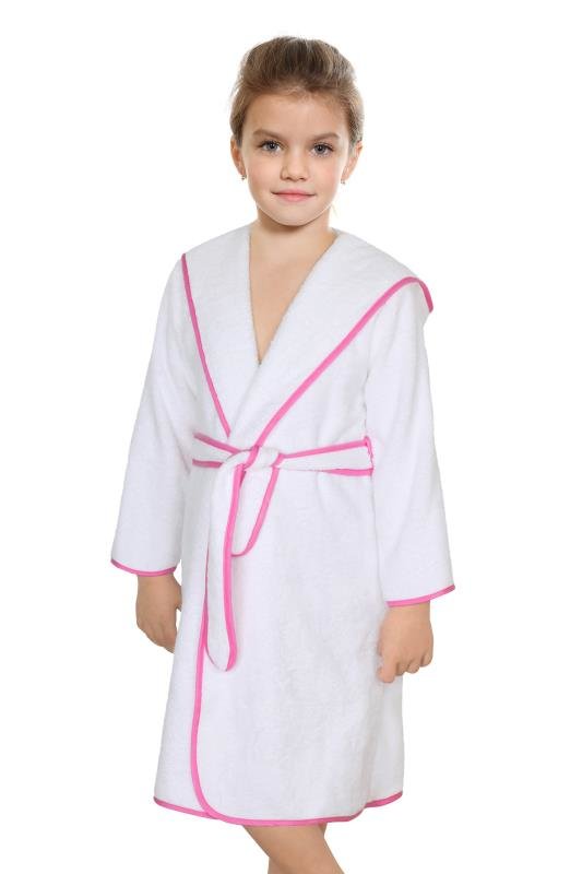 Froté župan - bílý s růžovou stuhou - vel. 5 - 7 let