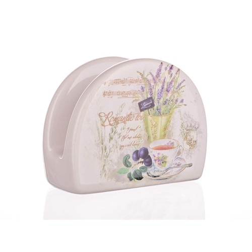 Upoutejte pozornost svých hostů i rodiny s tímto krásným keramickým stojánkem na ubrousky, který zútulní každý jídelní stůl. Díky němu budete mít ubrousky stále po ruce a navíc váš stůl ozdobí jemný dekor levandule, který navozuje atmosféru klidu a přírody.