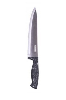 Tento kuchařský nůž má celkovou délku 33 cm a ostří dlouhé 20 cm, což jej činí ideálním nástrojem pro každodenní využití v kuchyni. Díky titanové povrchové úpravě je čepel nejen velmi ostrá, ale také dlouhodobě odolná proti opotřebení. Ergonomicky tvarovaná rukojeť v imitaci žuly nejen skvěle padne do ruky, ale zároveň disponuje antibakteriální úpravou, která zajišťuje vyšší bezpečnost při práci s potravinami. Nůž je vhodný na řezání masa, zeleniny, ovoce, ryb a také na drcení bylinek.