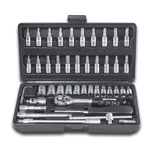 Gola sada Honiton obsahuje 46 dílů 1/4" hlavic pro různé účely. Kufřík funguje jako balení a úložný prostor v jednom. Vše najdete snadno a rychle a to právě díky šikovným přihrádkám v kufříku. Balení obsahuje 1/4“ hlavice: 4; 4,5; 5; 5,5; 6; 7; 8; 9; 10; 11; 12; 13; 14, 1/4“ ráčna, 1/4“ nástavec...