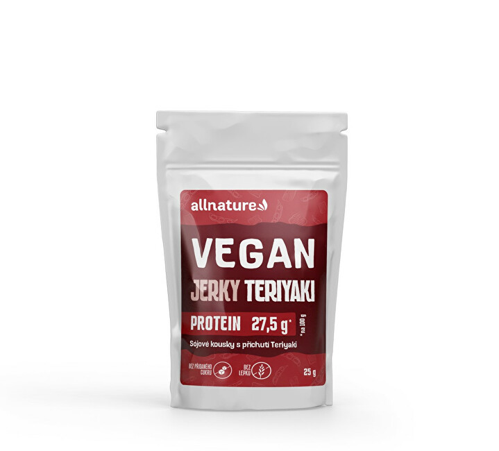 Sušené sójové kousky s příchutí teriyaky představují tu nejlepší možnou alternativu masa. Veganské Jerky obsahují téměř nulové množství tuků a jsou bohaté na bílkoviny a vlákninu, díky kterým dodají svalům potřebnou regeneraci. Pochutná si na nich každý, kdo hledá ideální rychlou svačinu na cesty...