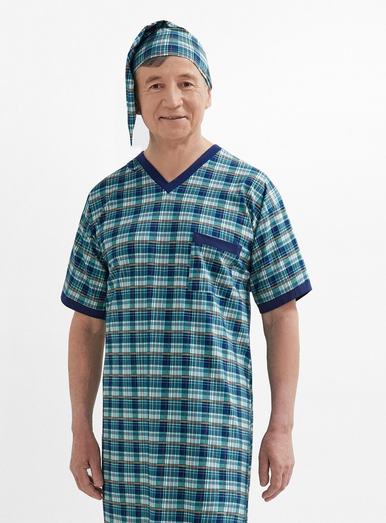 Koszula nocna męska- z krótkim rękawem- dekolt w szpic- na wysokości klatki piersiowej mała kieszonka- do kompletu szlafmyca číst celé
