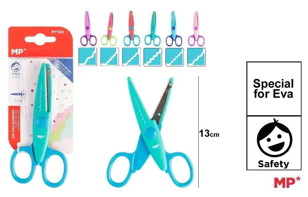 Nożyczki dziecięce z plastikowym korpusem i stalowymi ostrzami. Idealne do cięcia gumy Eva. 6 różnych krojów: zygzakowaty w 3 rozmiarach. Różne kolory.Mix wzorów, produkt wysyłany losowo, cena za 1 sztukę číst celé