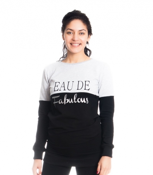 Těhotenské a kojící triko/mikina Fabulous, dlouhý rukáv, černo-světle šedá, vel. L; L (40)